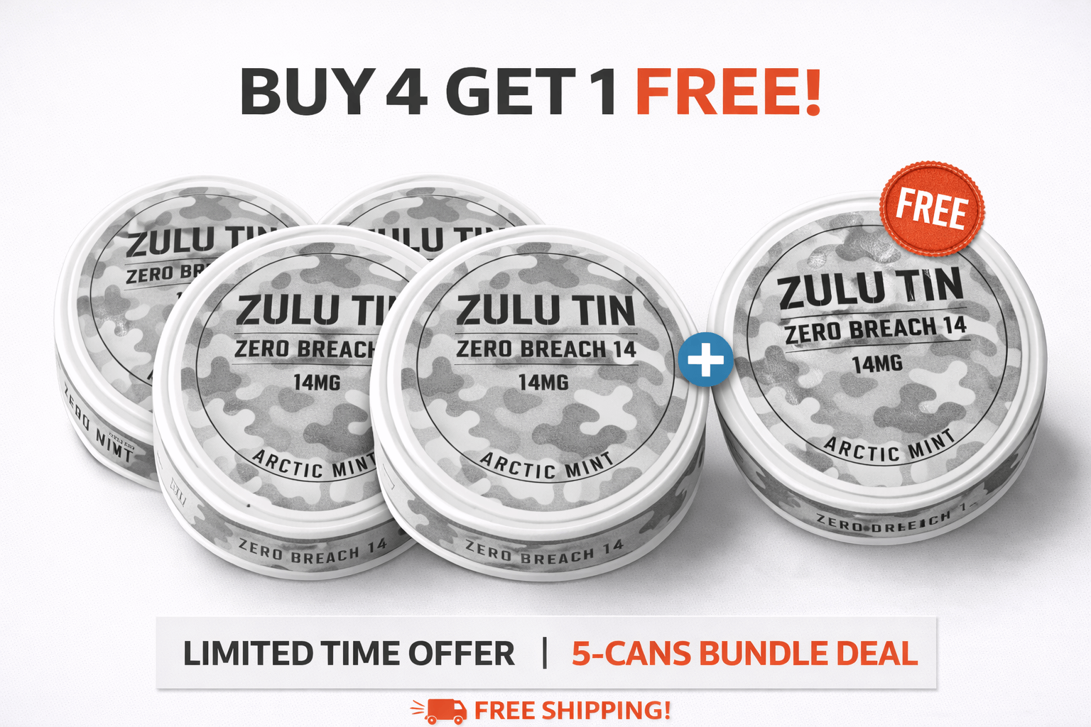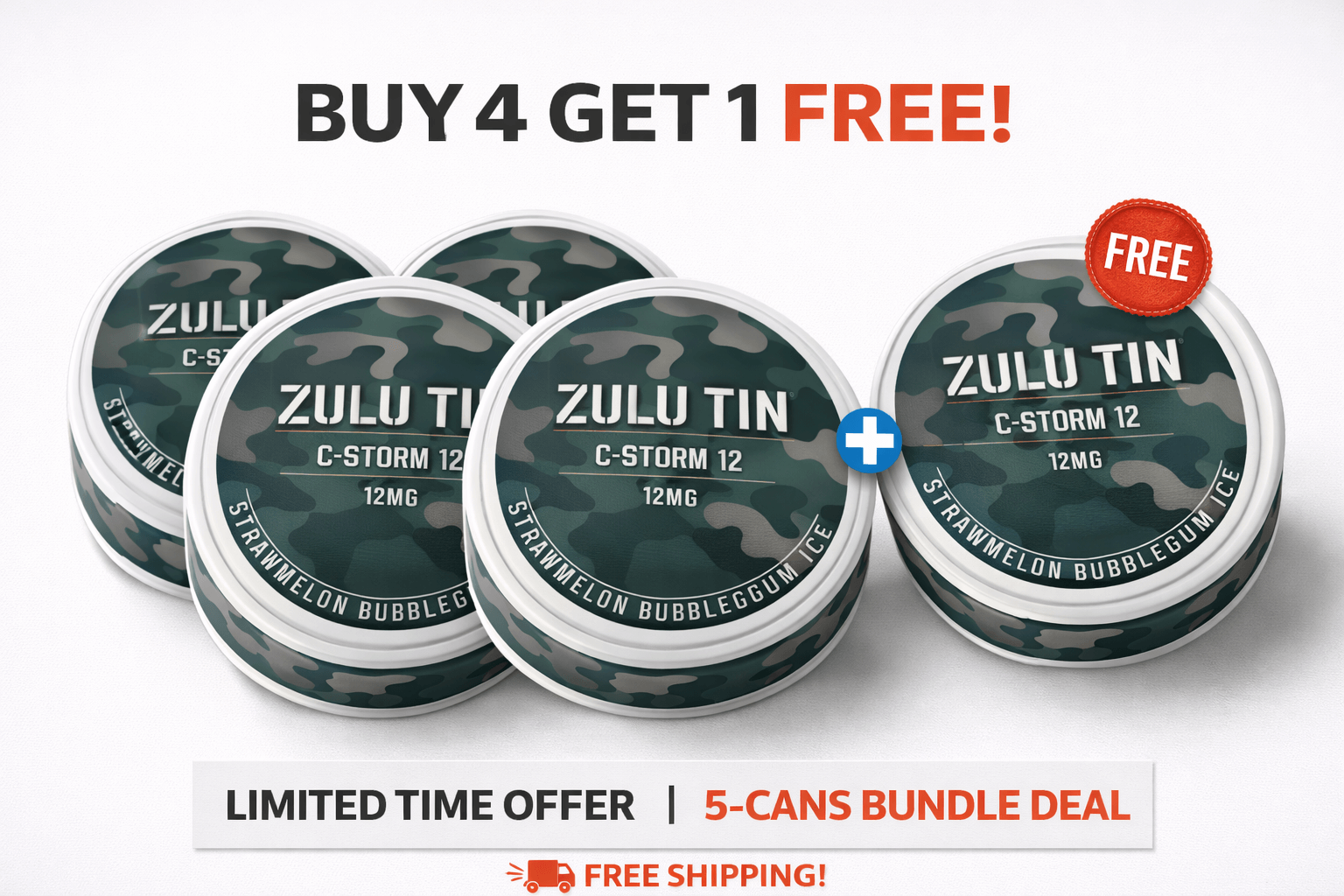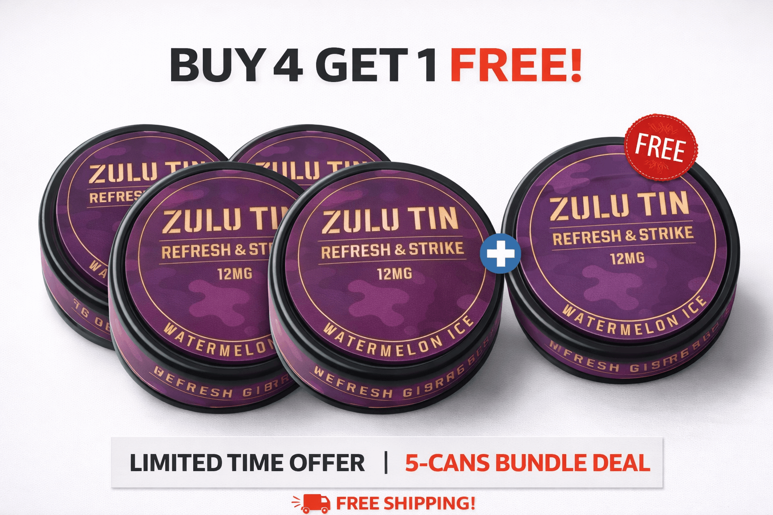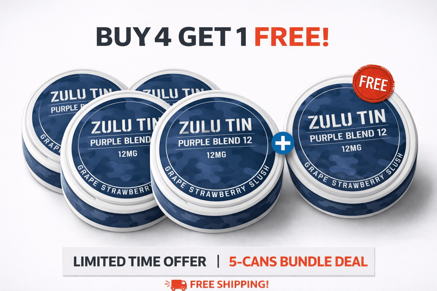 Buy 4 Get 1 Free + Free Shipping